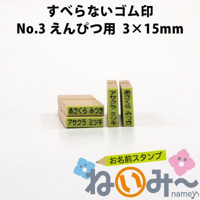 お名前スタンプ【ねいみ~♪】単品オプション すべらないゴム印 No.3「えんぴつ用」(3mm×15mm) 1本ずつばら売り単品