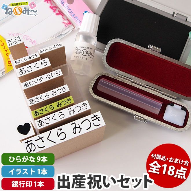大人気!『てまり』シリーズの銀行印と、入園準備・入学準備に大変便利なおなまえスタンプセットねいみー♪をワンセットでギフト用にご用意しました。 出産祝いとしての贈り物はもちろん、ご自宅用としても使えます。 ≫本象牙の銀行印とお名前スタンプねいみ~♪の出産祝いセット『すこやかに』はこちらからご購入いただけます。