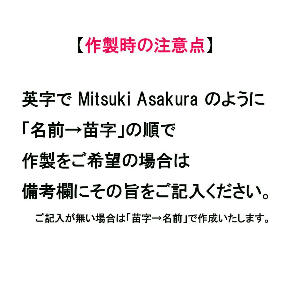 ※英字で Mitsuki Asakura のように「名前→苗字」の順での作製をご希望の場合は備考欄にその旨をご記入ください。