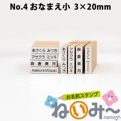他の画像を見る お名前スタンプ【ねいみ~♪】単品オプション すべらないゴム印 No.5「おなまえ中」(5mm×30mm) 1本ずつばら売り単品 詳細を見る お気に入りに登録する 価格 ¥ 660 税込 4.00 (1)