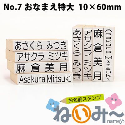 他の画像を見る お名前スタンプ【ねいみ~♪】単品オプション すべらないゴム印 No.7「おなまえ特大」(10mm×60mm) 1本ずつばら売り単品 詳細を見る お気に入りに登録する 価格 ¥ 1,980 税込 (0)