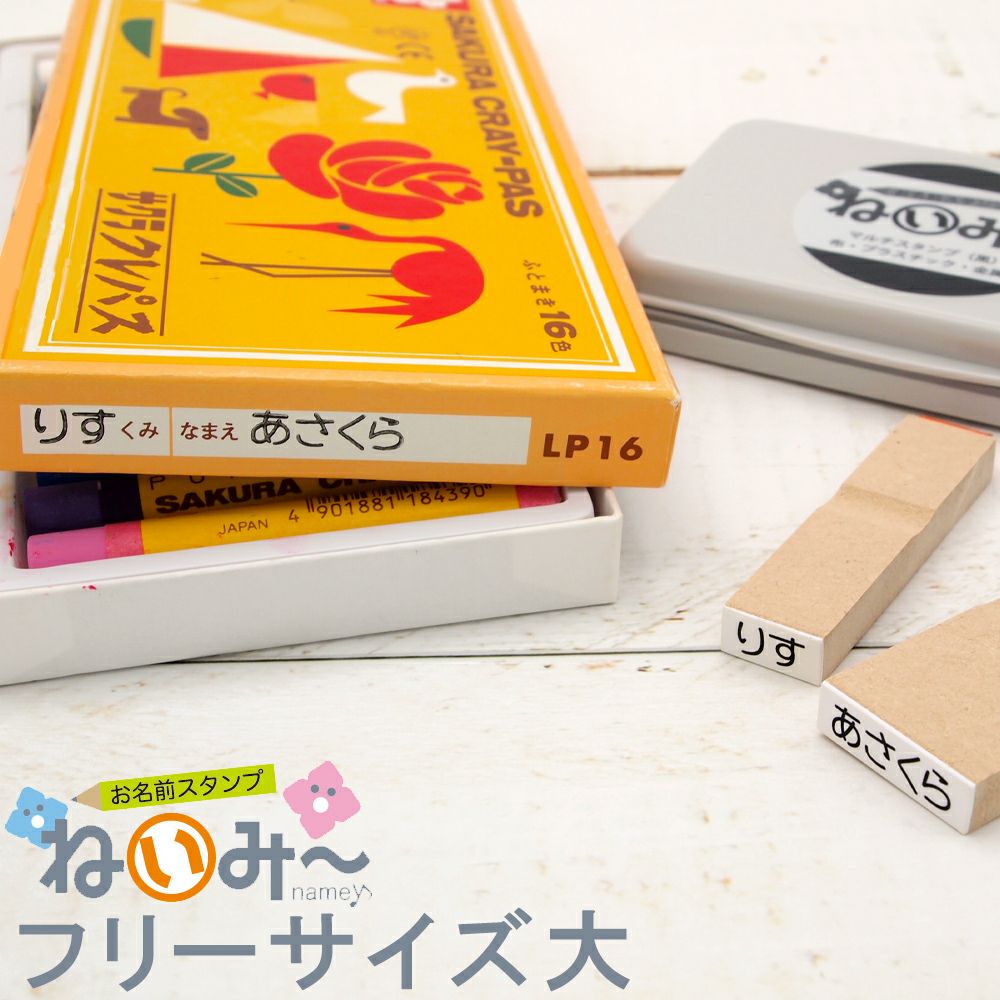 他の画像を見る お名前スタンプ【ねいみ~♪】単品オプション すべらないゴム印 No.6「おなまえ大」(6mm×40mm) 1本ずつばら売り単品 詳細を見る お気に入りに登録する 価格 ¥ 990 税込 (0)